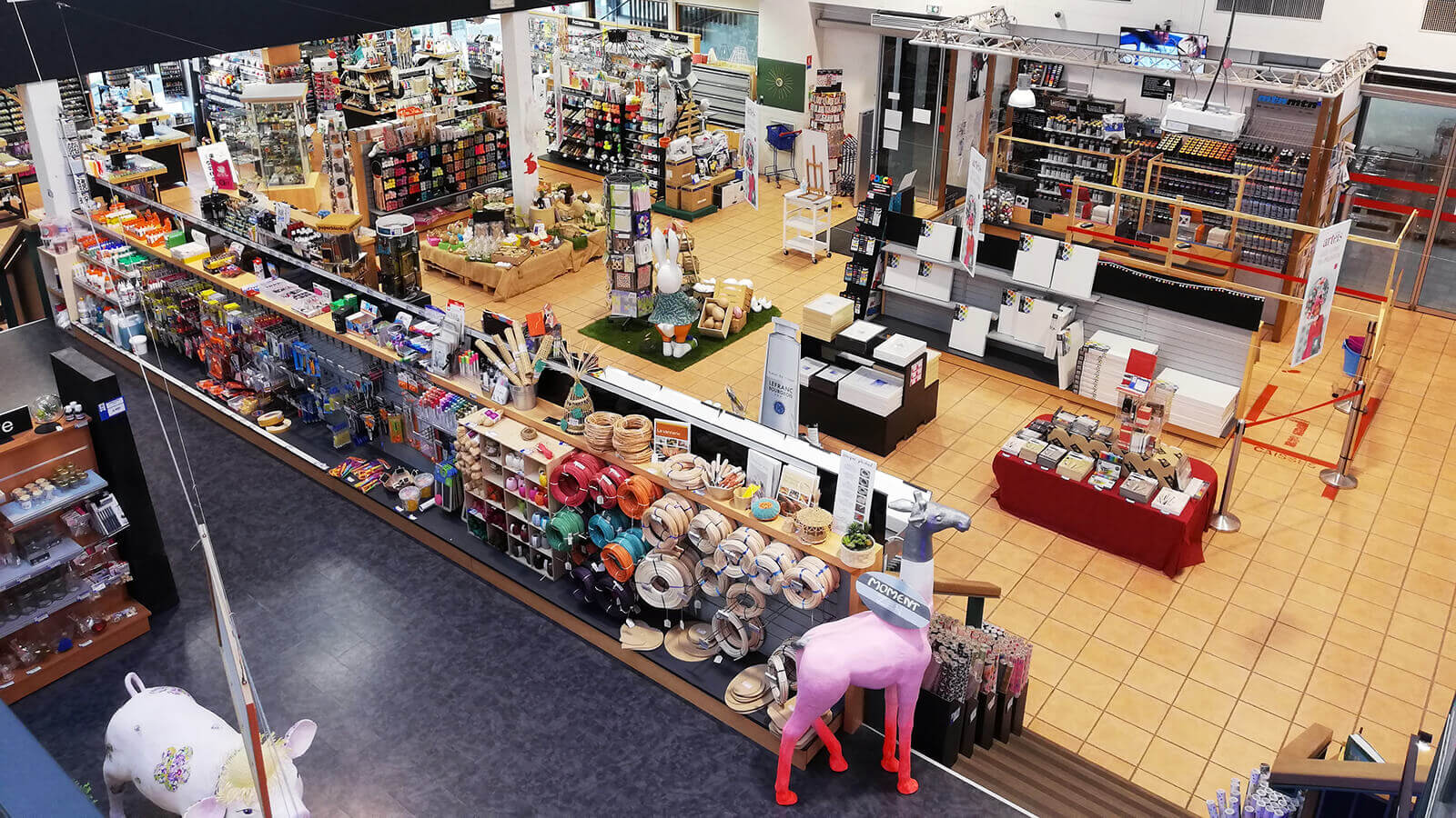 Nous vous proposons, sur une surface de 900 m² répartie en quatre demi-niveaux, un moment d’évasion dans le monde des Arts Créatifs.
